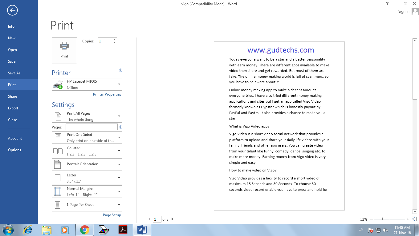 हम बात करने जा रहे है, उस डायलॉग बॉक्स की जो किसी भी डॉक्यूमेंट को प्रिंट करने के लिए हम Print पर क्लिक या शॉर्टकट की “Ctrl+P” दबाते ही खुल जाता है, जिसे प्रिंट डायलॉग बॉक्स कहते है.